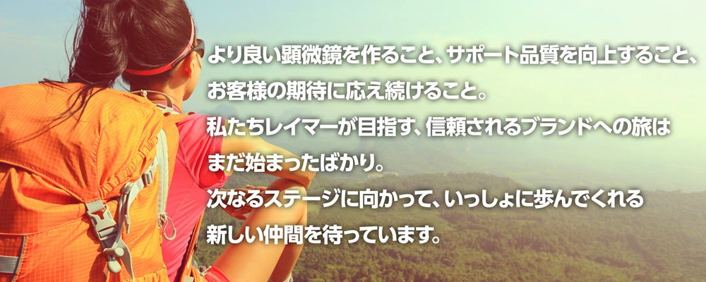 レイマーは光学顕微鏡および顕微鏡用カメラの企画から販売、サポートまでをトータルで行っている会社です。コストパフォーマンスのよさと、手厚いユーザーサポートを大切にしながら、幅広い学術産業分野のお客様の抱える課題の解決に取り組んでいます。
